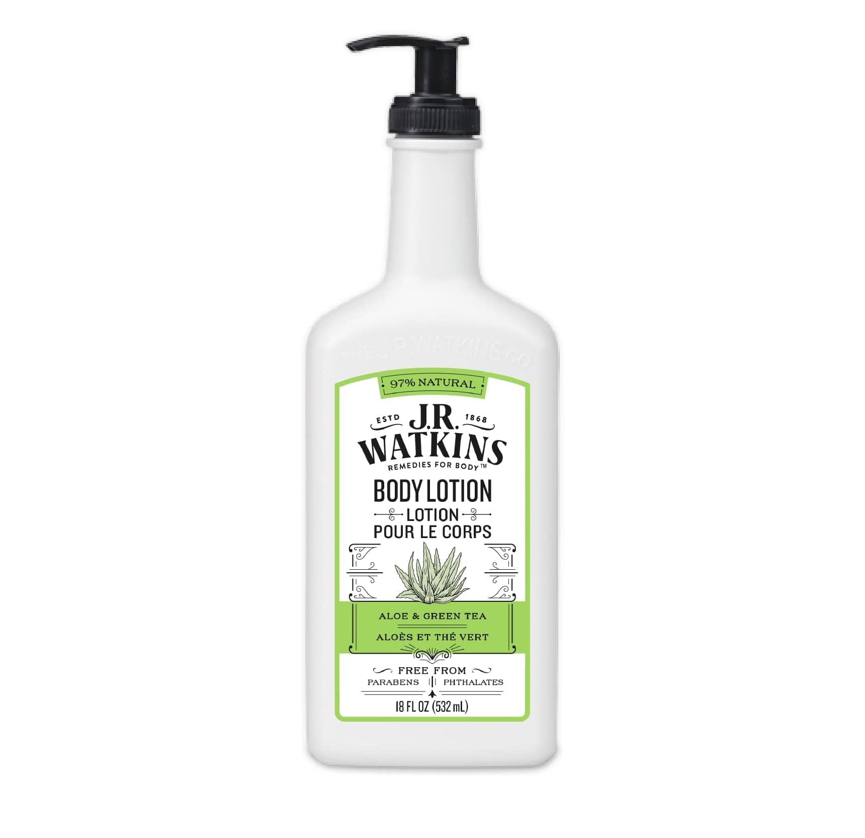 J.R. Watkins Aloe and Green Tea Daily Moisturizing Lotion, Body Cream in Pump Dispenser, Hydrating Skin Cream Made with Shea Butter, Cocoa Butter, Coconut Oil & Vitamin E, 532 Milliliters