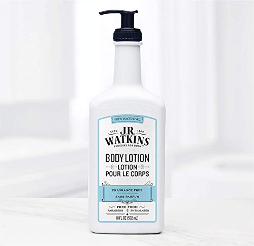 J.R. Watkins Fragrance Free Daily Moisturizing Lotion, Body Cream in Pump Dispenser, Hydrating Skin Cream Made with Shea Butter, Cocoa Butter, Coconut Oil & Vitamin E, 532 Milliliters