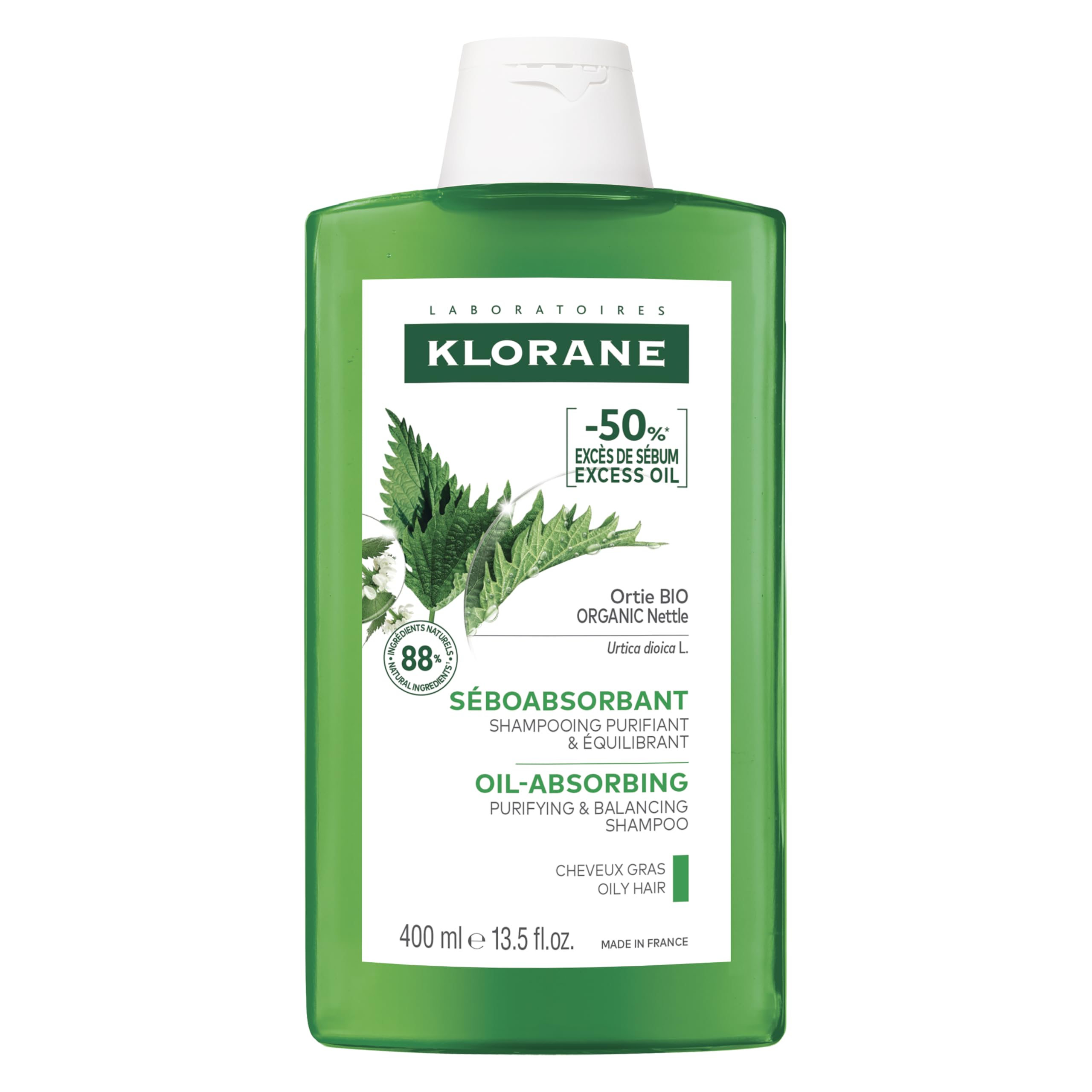 Klorane, Oil Absorbing Shampoo with Organic Nettle for Oily Hair and Scalp, Helps Absorb Excess Oil , Natural, 400ml