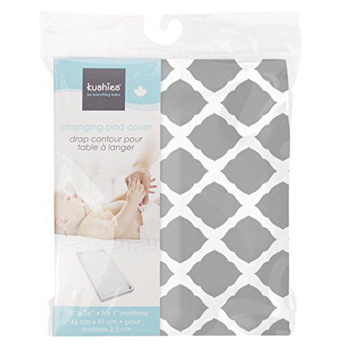 Kushies Changing Pad Cover for 1" pad, 100% breathable cotton, Made in Canada, Grey Lattice