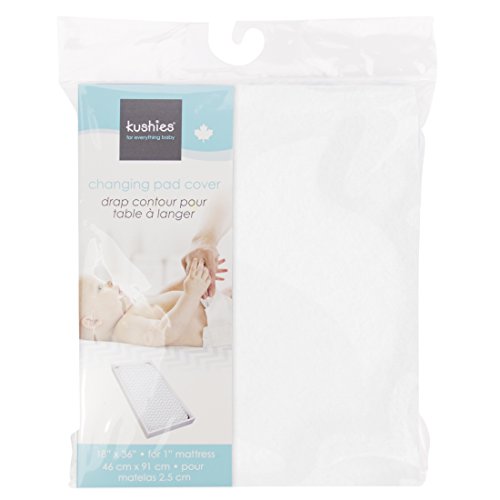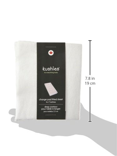 Kushies Changing Pad Cover for 1" pad, 100% breathable cotton, Made in Canada, White