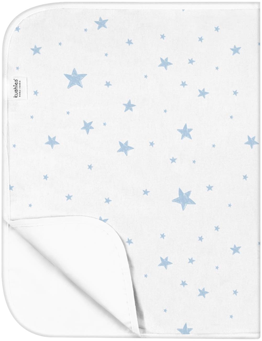 Kushies Baby Deluxe Flat Waterproof Changing Pad Liners, 20 x 30", White w/Blue Stars