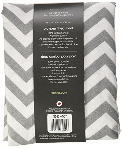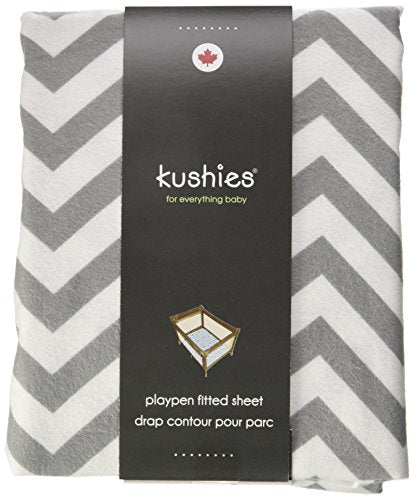 Kushies Pack N Play Playard Sheet, Soft 100% breathable cotton flannel, Made in Canada, Grey Chevron