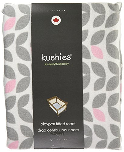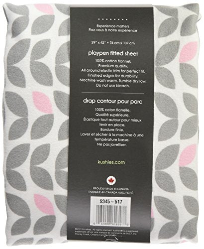 Kushies Pack N Play Playard Sheet, Soft 100% breathable cotton flannel, Made in Canada, Grey Petal