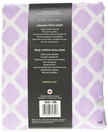 Kushies Pack N Play Playard Sheet, Soft 100% breathable cotton flannel, Made in Canada, Lilac Lattice