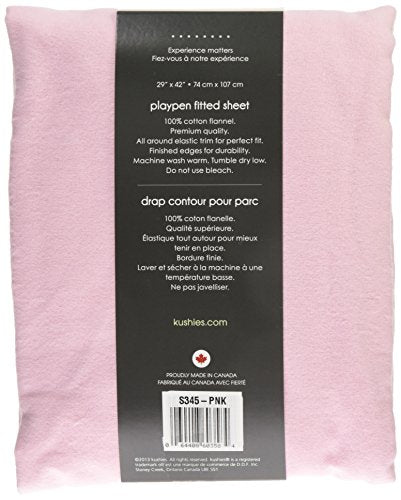 Kushies Pack N Play Playard Sheet, Soft 100% breathable cotton flannel, Made in Canada, Pink