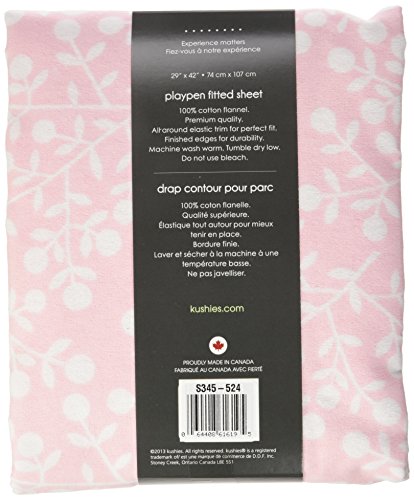 Kushies Pack N Play Playard Sheet, Soft 100% breathable cotton flannel, Made in Canada, Pink Berries