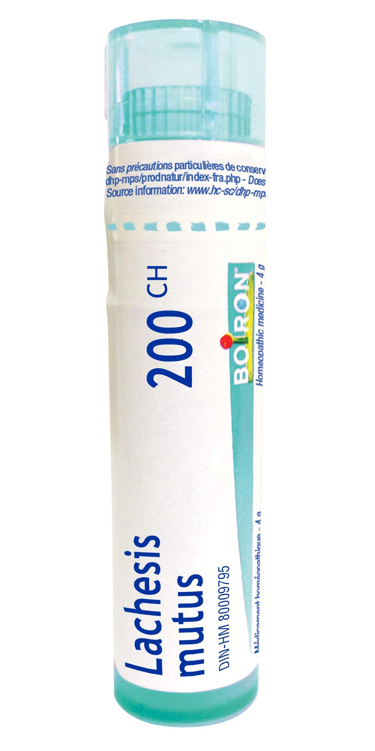 Boiron Lachesis mutus (mutus) 200ch,Homeopathic medicine. Each tube contains 4 g (approximately 80 pellets)