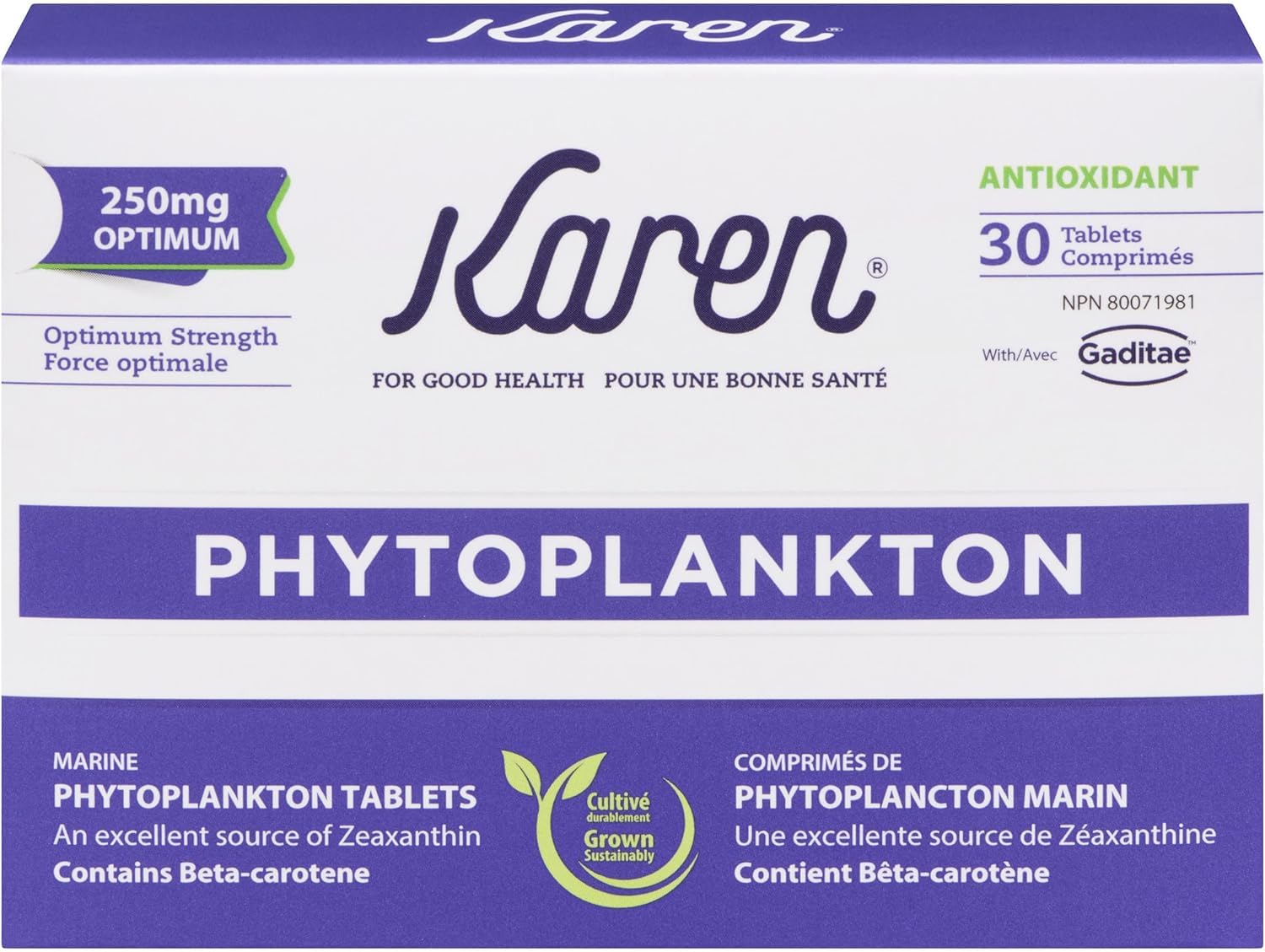 Karen Phytoplankton Optimum Tablets - Marine Phytoplankton Supplement for Men & Women - Essential Vitamins Minerals, & Omega 3 Pills - Digestive, Immunity, Energy, Skin, Sleep, & Gut Health - 30 Count