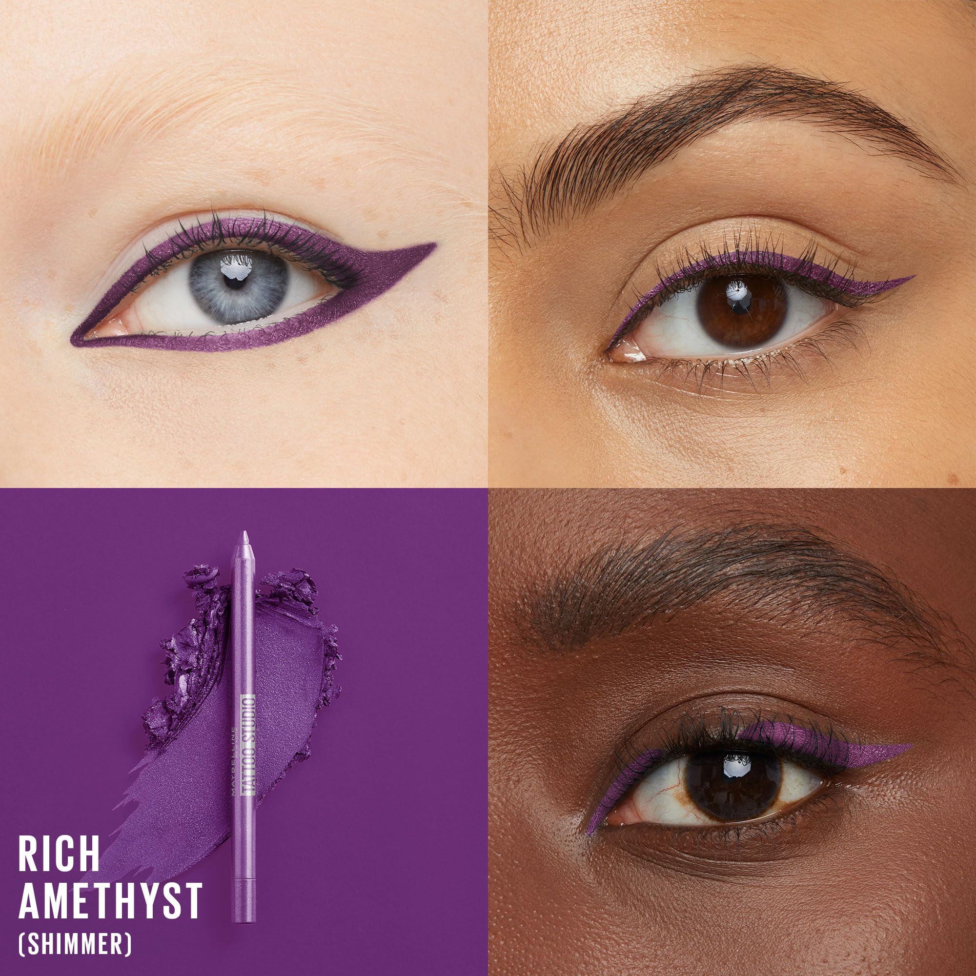 Maybelline New York Tattoo studio Waterproof, Long Wearing, Eyeliner Pencil Makeup, Rich Amethyst, 0.04 Oz