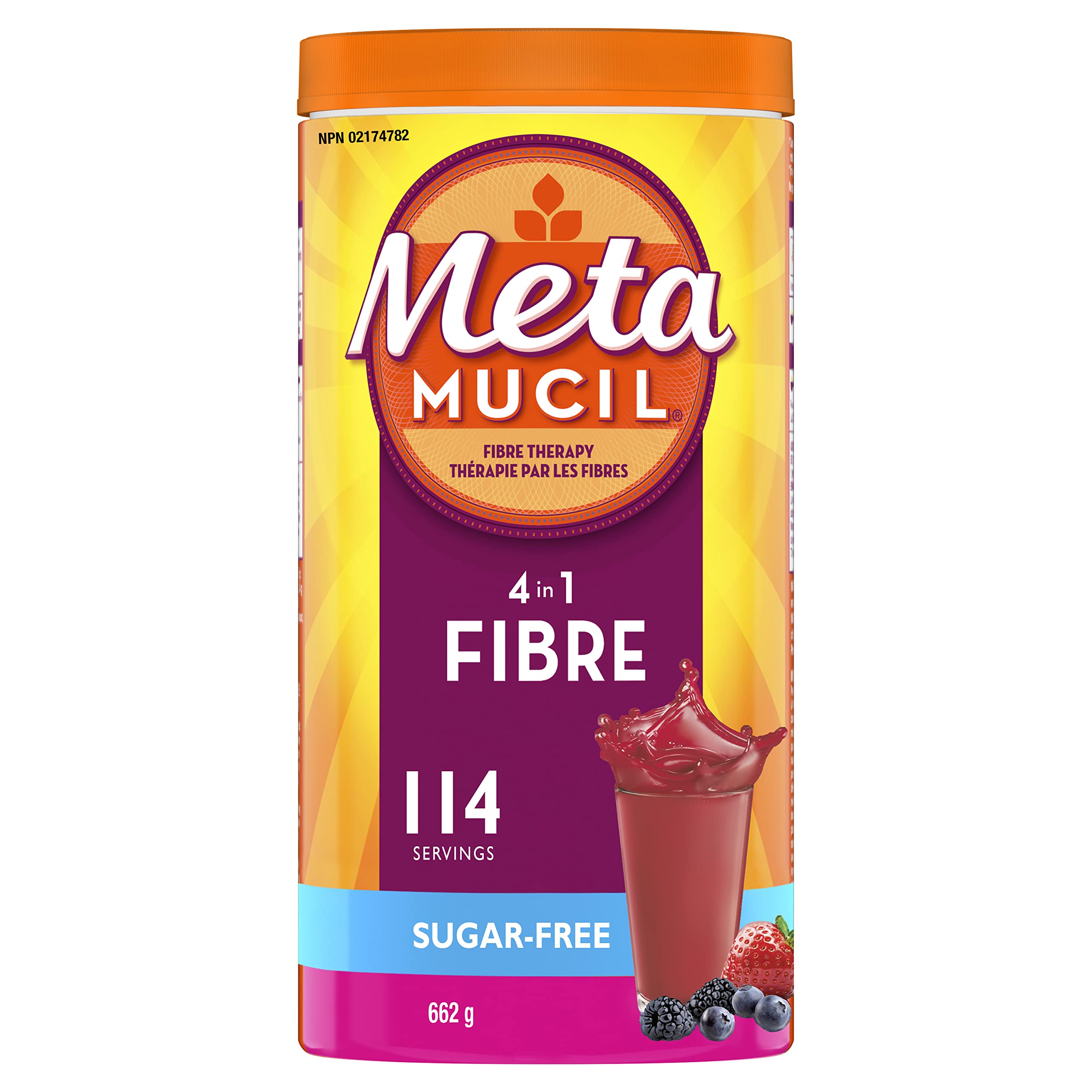 Metamucil, Daily Psyllium Husk Powder Supplement, Sugar-Free, 4-in-1 Fibre for Digestive Health, Berry Smooth Flavored Drink, 114 Servings