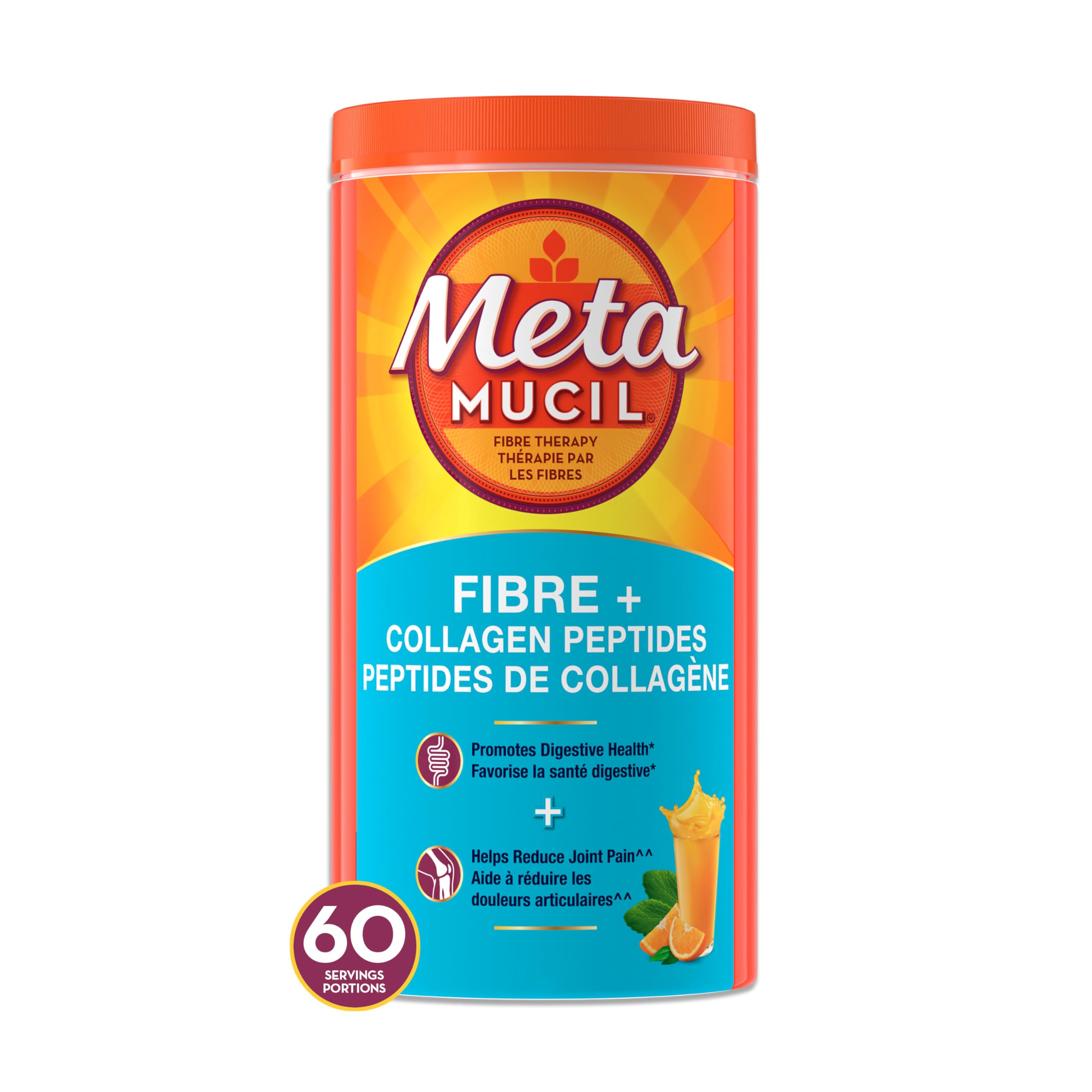 Metamucil Daily Fibre + Collagen Peptides, Psyllium Husk Powder, Plant Based Sugar-Free with Stevia, Orange Flavoured, 60 Servings (564 g)