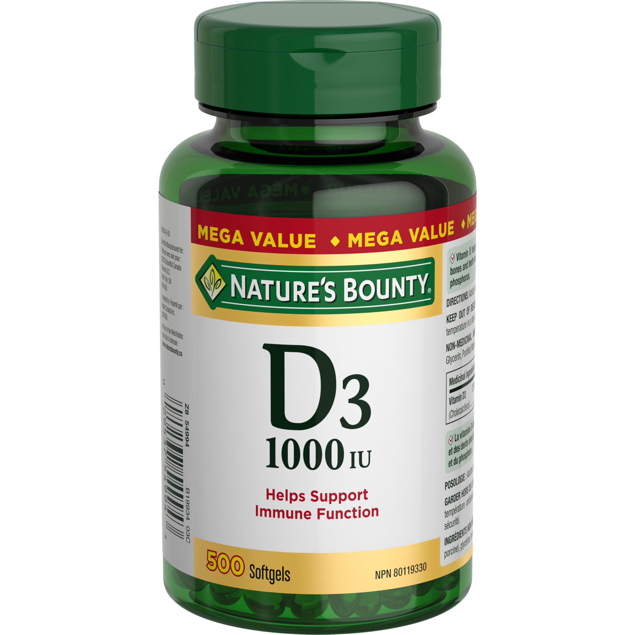 NATURE'S BOUNTY Vitamin D3, 1000 IU, Mega Value, Helps Support Immune Function, Helps Develop & Maintain Bones & Teeth, Helps in Absorption Of Calcium & Phosphorus, 500 Softgels, 118 g