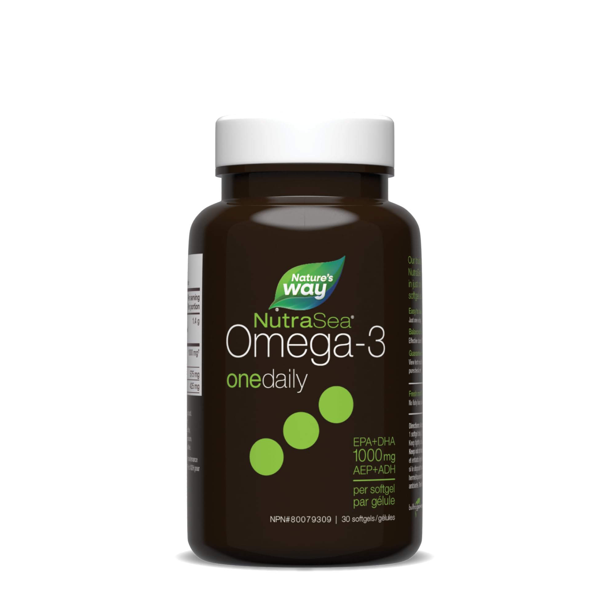 Nature's Way NutraSea One Daily Omega 3 High Potency Softgels Supplement with Fish Oil – Fresh Mint Flavour – Heart & Brain Support for Adults and Kids Ages 6+ – EPA & DHA, 30 Softgels