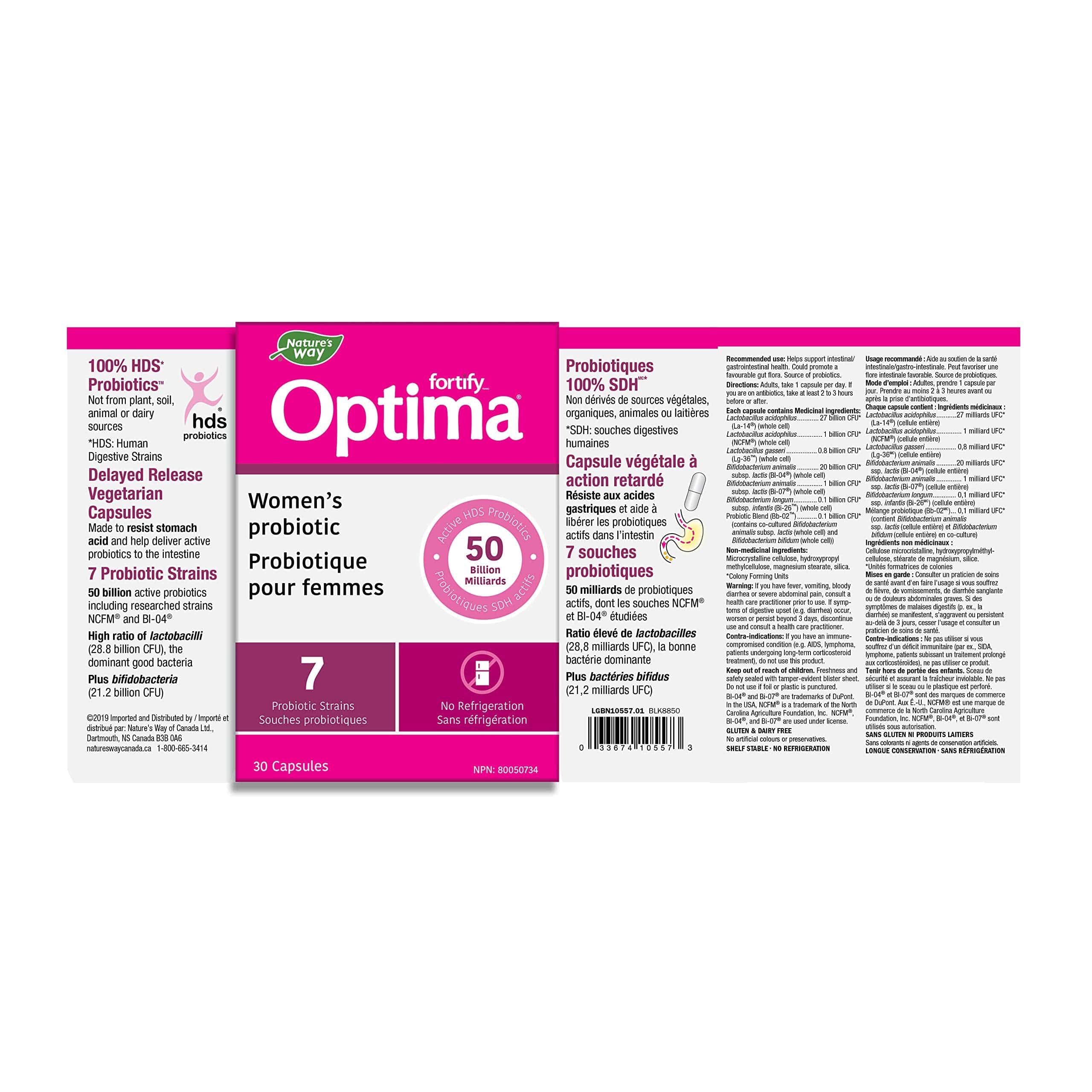 Nature's Way Optima Once Daily Women’s Shelf Stable 7 Probiotics Strains, 50 Billion CFU Guaranteed Potency to Expiration, Gluten Dairy & Dairy Free, 30 Capsules