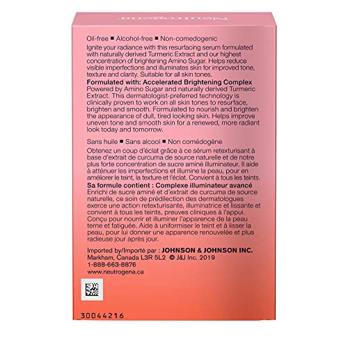 Neutrogena Bright Boost Illuminating Face Serum With Neoglucosamine & Turmeric Extract for Even Skin Tone & Resurfacing, Anti-Aging, oil-free, 30 Milliliters