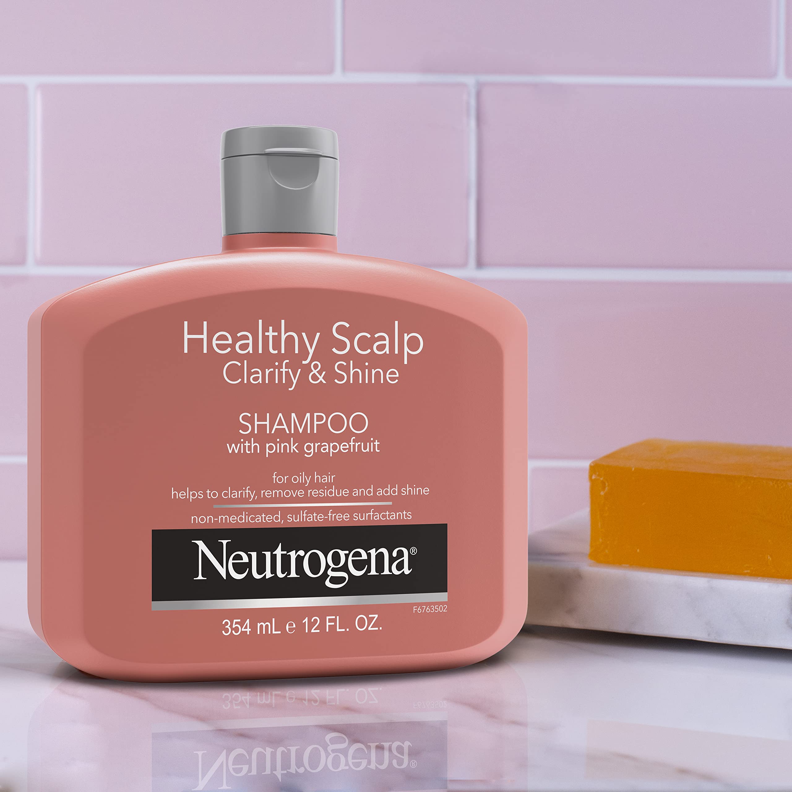 Neutrogena Exfoliating Healthy Scalp Clarify & Shine Shampoo for Oily Hair and Scalp, Anti-Residue Shampoo with Pink Grapefruit, pH-Balanced, Paraben & Phthalate-Free, Color-Safe, 354 ml.