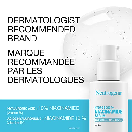 Neutrogena Hydro Boost+ Niacinamide Serum, Hyaluronic Acid, 10% Niacinamide Vitamin B3, Fragrance Free Facial Serum, 29 mL