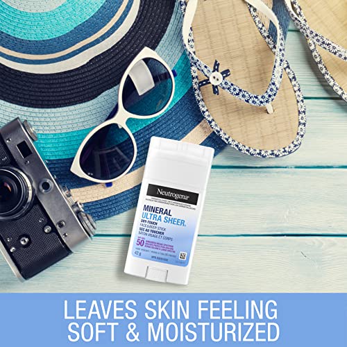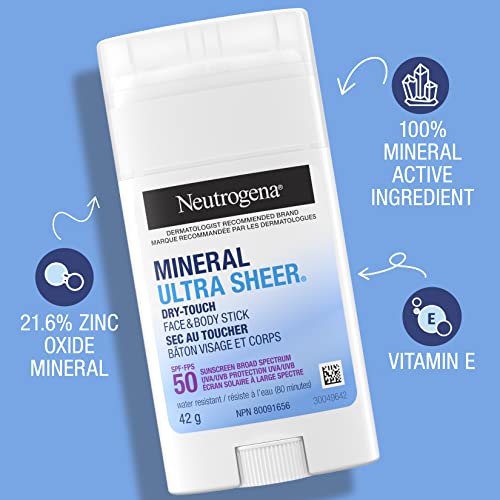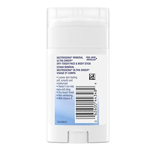 Neutrogena Mineral Ultra Sheer Dry-Touch Face & Body Stick SPF 50 - With Vitamin E - Sun Protection - Zinc Oxide - 42g, White