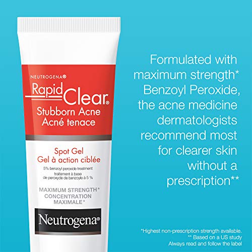 Neutrogena Rapid Clear Stubborn Acne Spot Treatment Gel with Maximum Strength 5% Benzoyl Peroxide Acne Treatment Medication for Acne Prone Skin Care, 28g