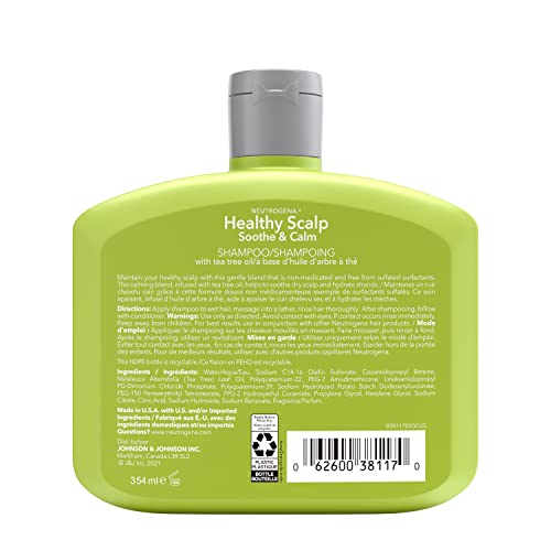 Neutrogena Soothing & Calming Healthy Scalp Shampoo to Moisturize Dry Scalp & Hair, with Tea Tree Oil, pH-Balanced, Paraben-Free & Phthalate-Free, Safe for Color-Treated Hair, 354 ml.