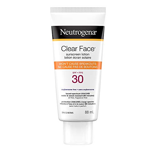 Neutrogena Sunscreen Lotion Clear Face for Acne Prone Skin, SPF 30, Water Resistant, Non Comedogenic & won't cause breakouts, 88 mL