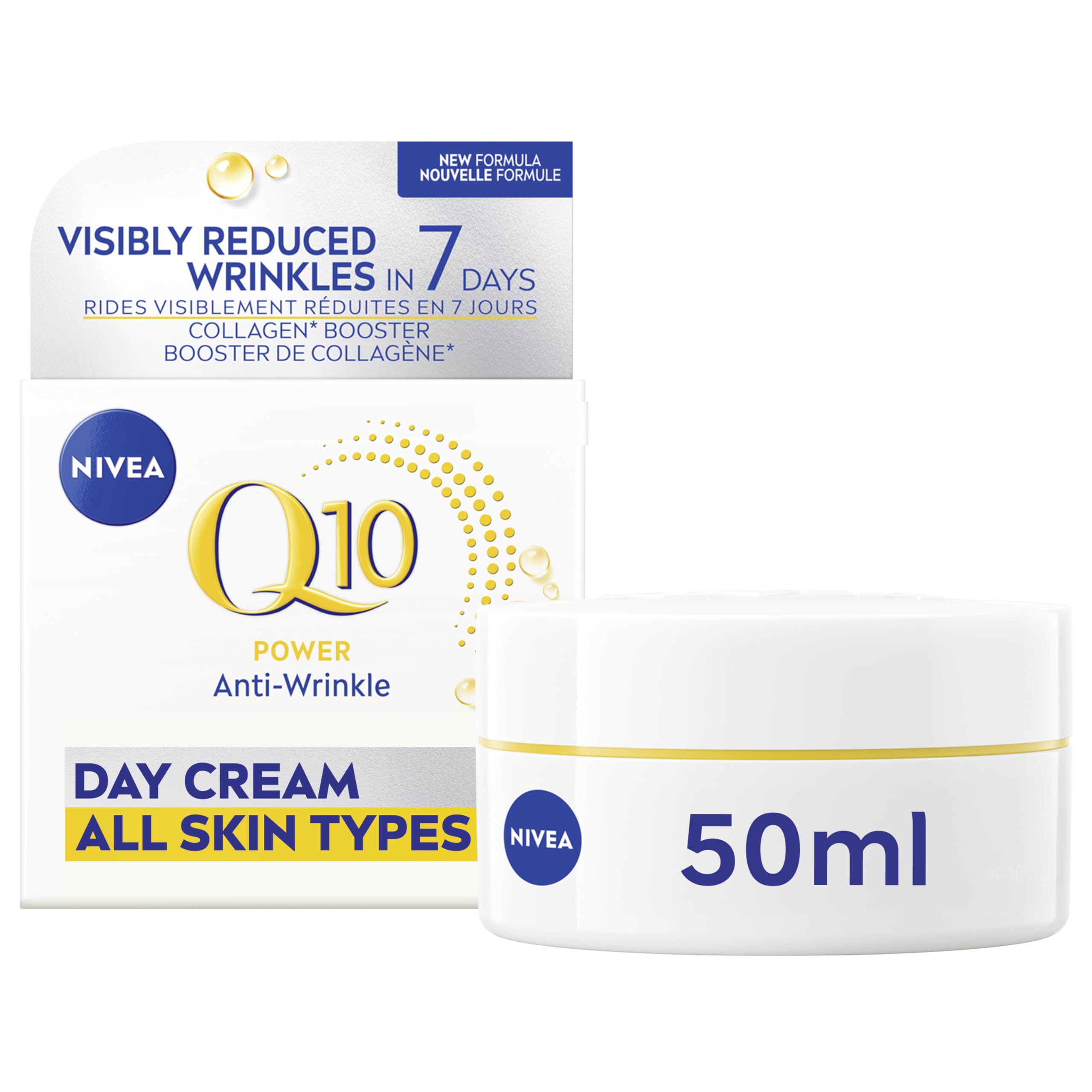 NIVEA Q10 Power Anti-Wrinkle Firming Day Face Cream, Anti Wrinkle Firming Cream with Q10 and Creatine, Face Moisturizer for All Skin Types, Visibly Reduces the Look of Wrinkles, 50mL