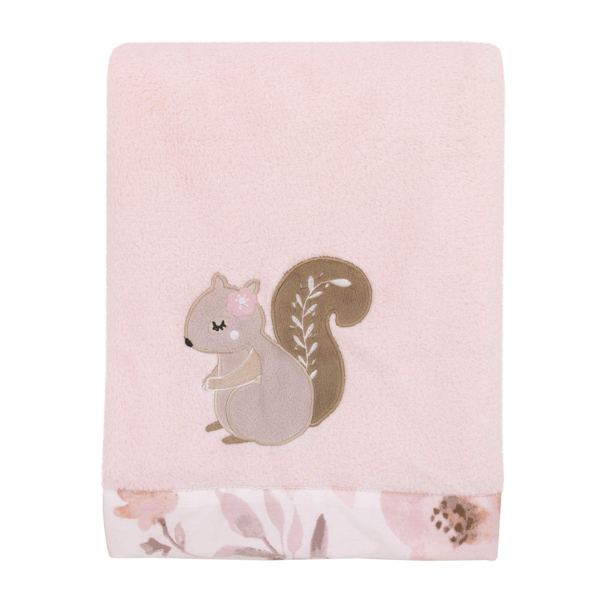NoJo Countryside Floral - White Super Soft Appliqued Baby Blanket, Pink, Grey