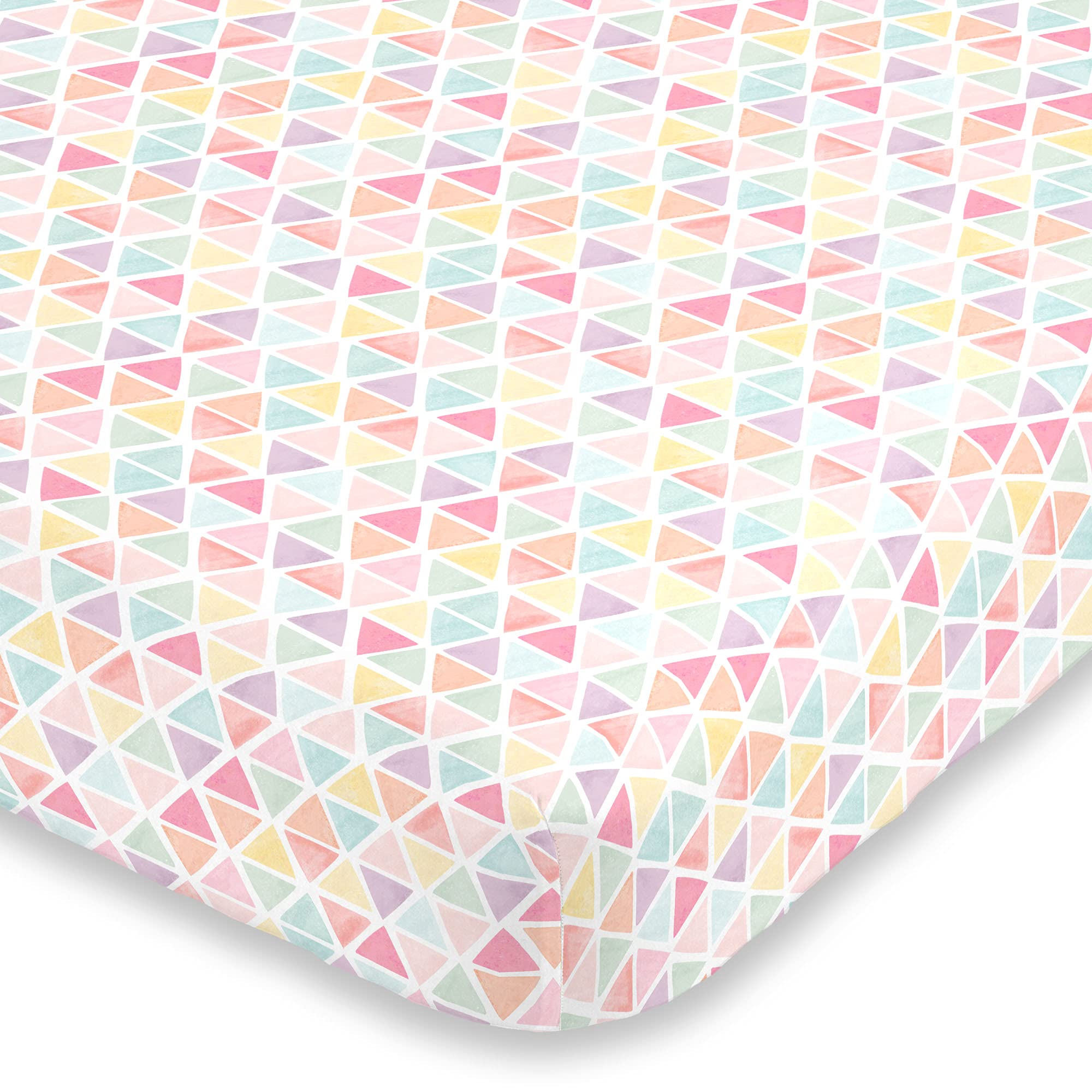 NoJo Watercolor Rainbow Mosaic Pink, Lavender, Aqua and Yellow Super Soft Fitted Crib Sheet