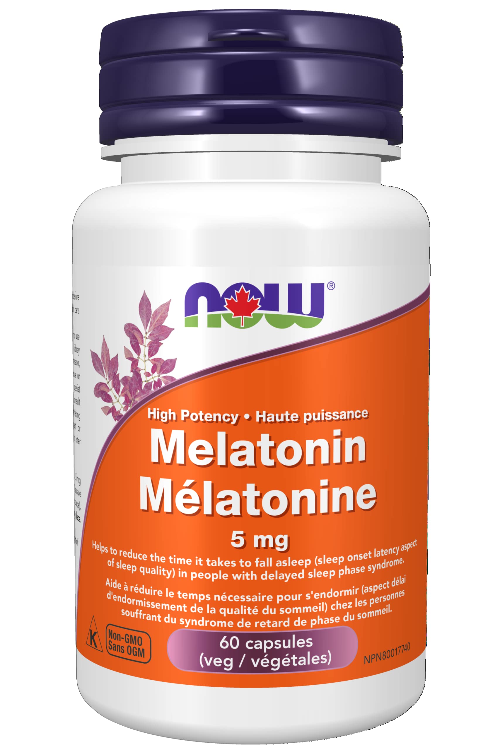 NOW Supplements, Melatonin 5 mg, Free Radical Scavenger, Healthy Sleep Cycle, 60 Veg Capsules