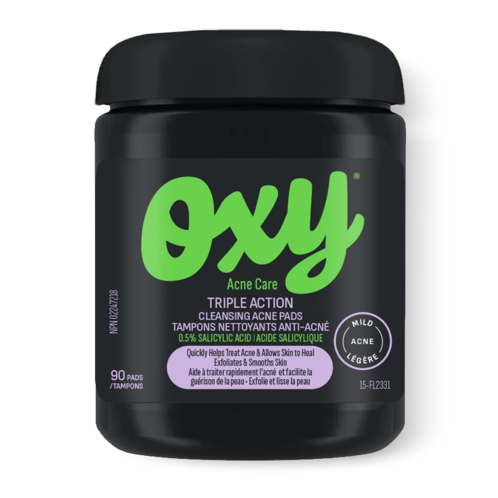 Oxy Triple Action Cleansing Acne Pads - Salicylic Acid 0.5% – For Mild Acne - Exfoliates, Helps Treat, and Prevent Breakouts – Paraben & Preservative Free - Dermatologist Tested