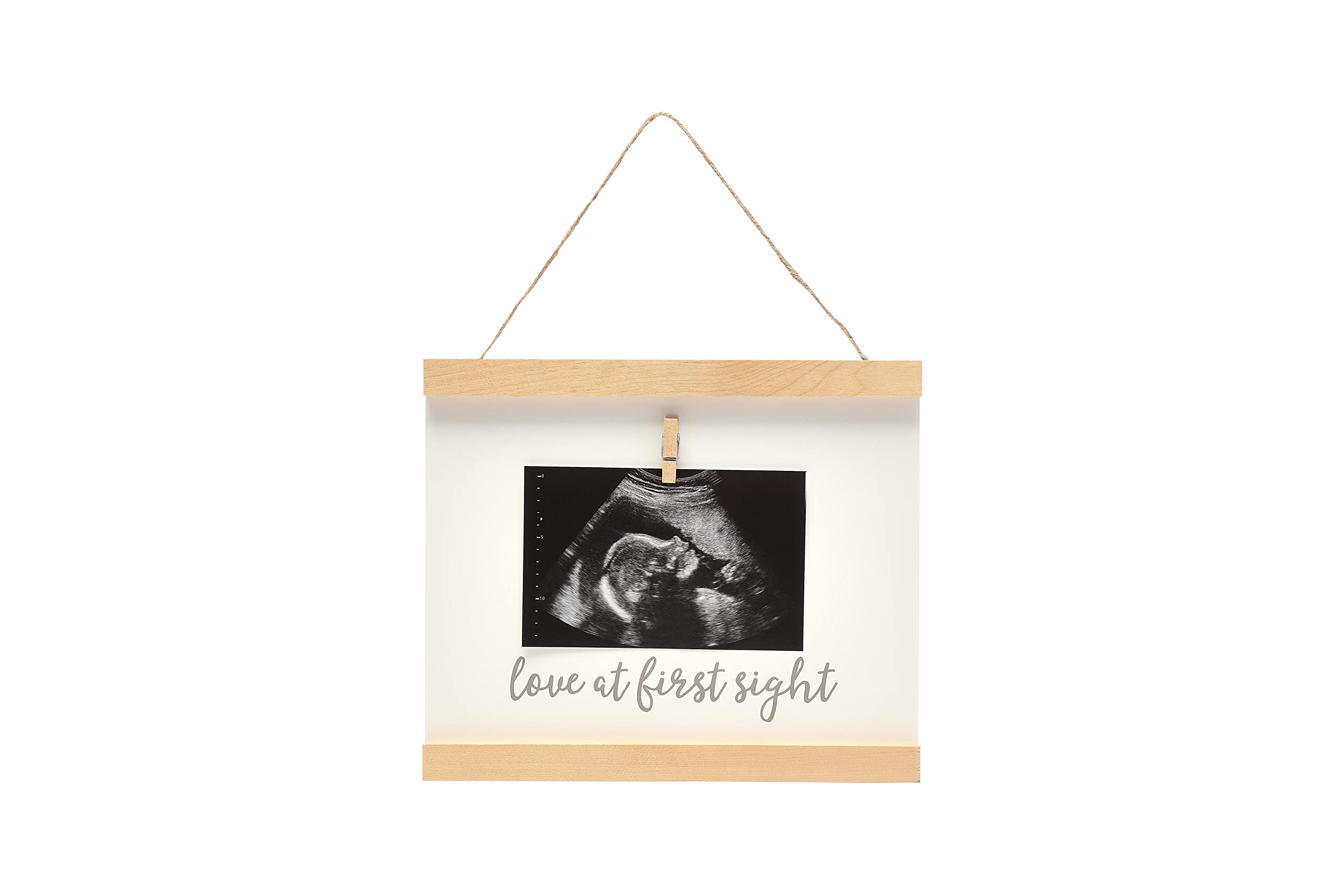 Pearhead Sonogram Love at First Sight Wall Art, Wooden Clip Baby Keepsake Frame, Gender-Neutral Baby Girl or Baby Boy Nursery Décor Accessory, Pregnancy Announcement Picture Frame