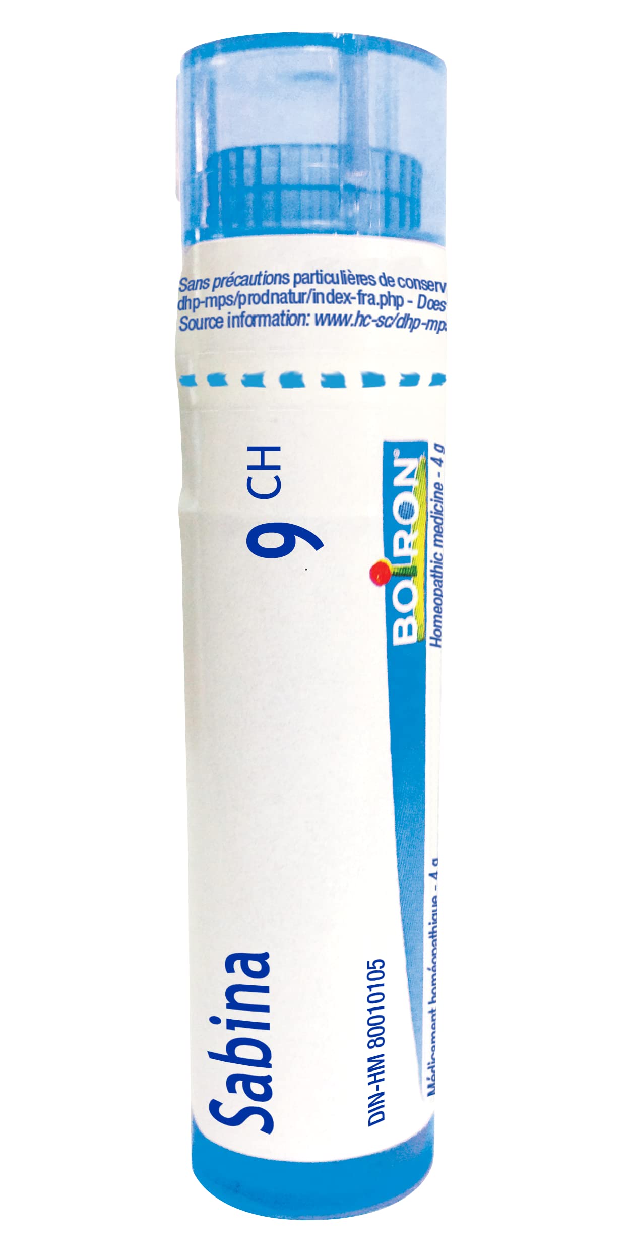 Boiron Sabina 9ch,Homeopathic medicine. Each tube contains 4 g (approximately 80 pellets)