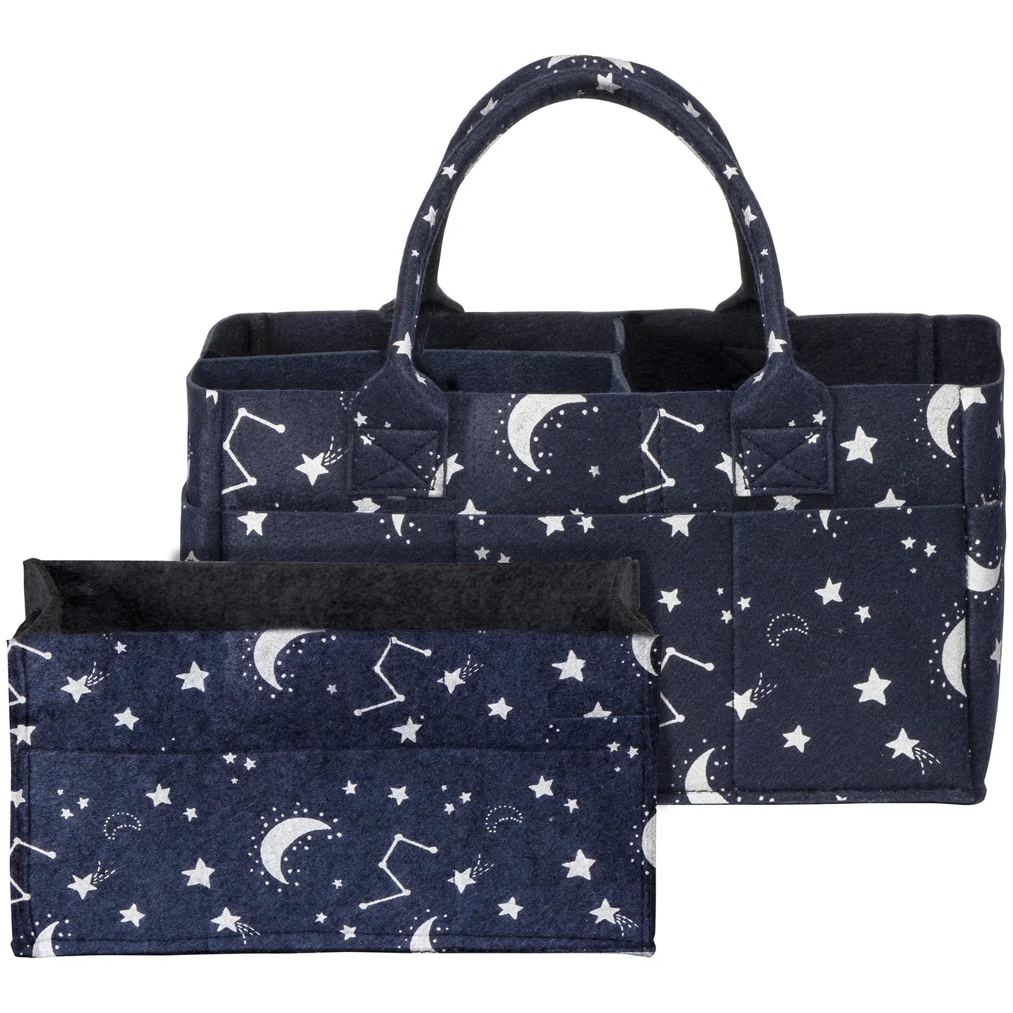 Sammy & Lou Constellation 2-Pack Felt Diaper Caddy Set, Includes Portable Diaper Organizer and Baby Wipes Caddy