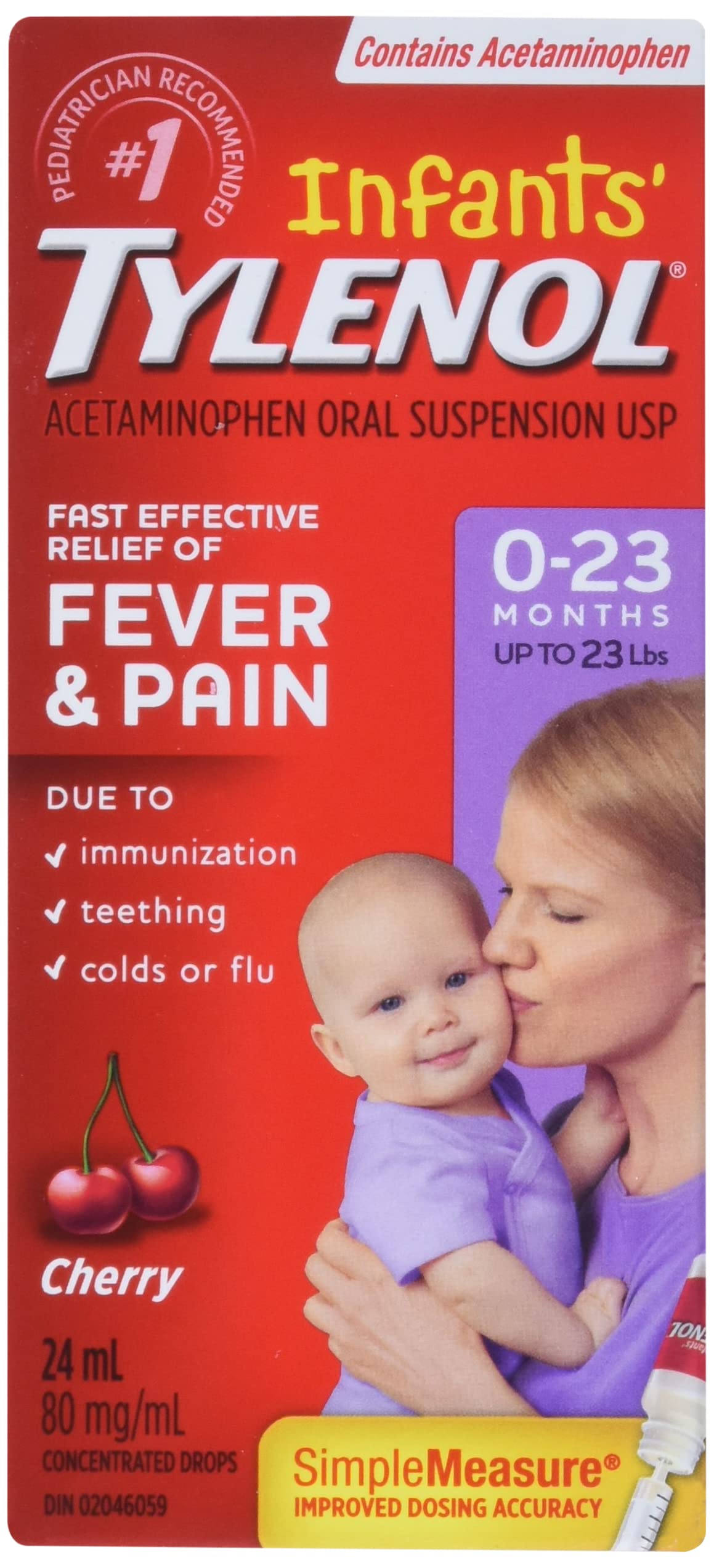 Tylenol Infant Fever, Teething and Pain Reliever for Baby, Cherry Suspension Medicine, 24mL