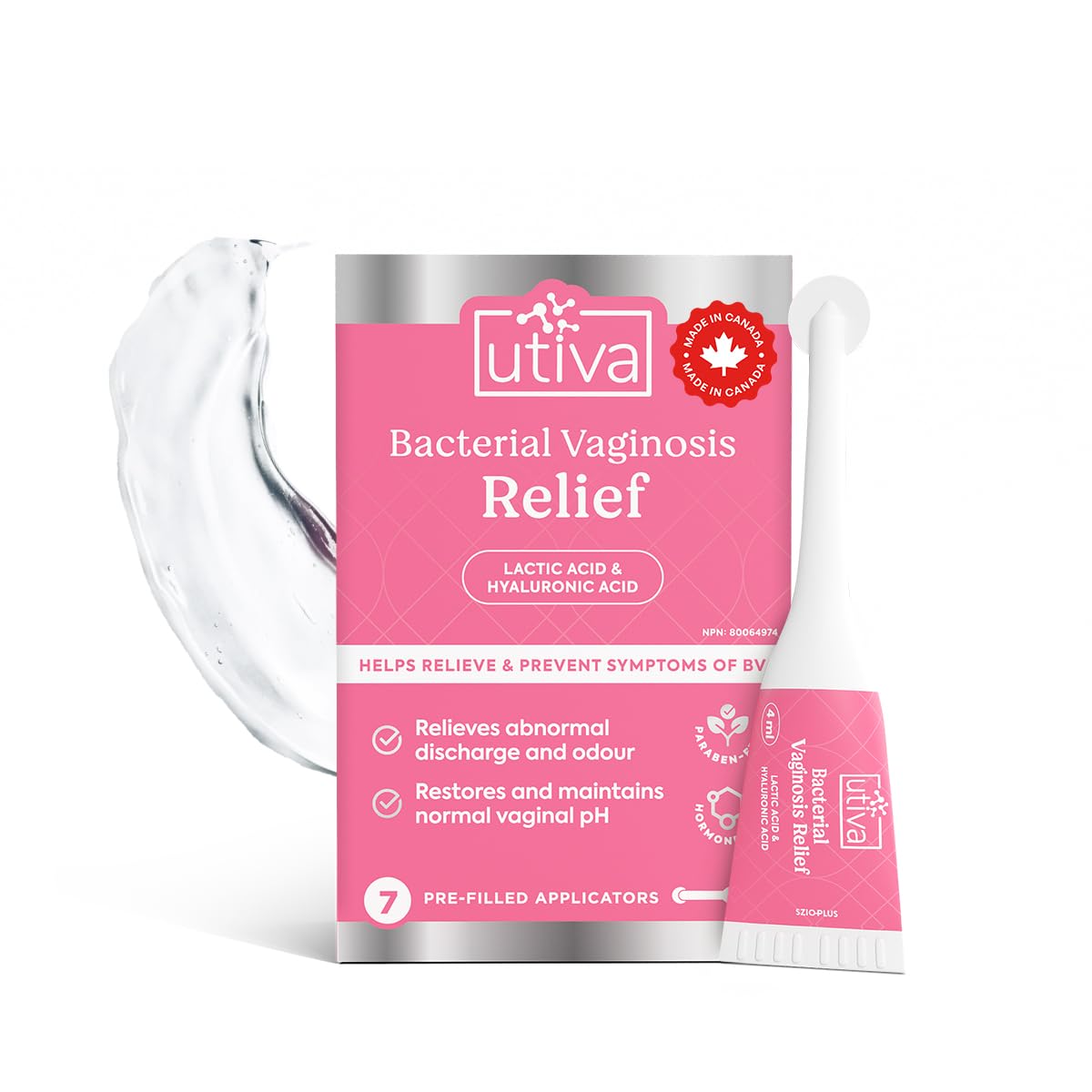 Utiva Bacterial Vaginosis Relief pre-filled applicators deliver a potent dose designed to combat BV, ensuring you feel fresh and confident again. Trusted by gynecologists, our formula provides reliable support with a dual-action blend of Lactic Acid and Hyaluronic Acid, targeting multiple symptoms such as irritation and discharge to ensure comprehensive care for your vaginal health. Using just one applicator a day for up to seven days, you can effectively promote pH vaginal balance, health, and comfort. Our pre-filled applicators, unlike pH balance feminine pills, ensure a localized, mess-free, and convenient application, allowing for precise dosage every time, and making it simple to manage BV at home. Backed by scientific research and trusted by healthcare professionals, Utiva Bacterial Vaginosis Relief is the easy and effective way to restore your natural pH balance and enjoy lasting comfort. Our gentle yet powerful formula soothes irritation, reduces discharge, and supports a balanced vaginal environment. Whether you need a gel intime toilette femme or a pH balance feminine wash, our product covers all aspects of feminine care. It works as an effective intimate wash pH balance and is ideal for use alongside vaginal probiotics, ensuring optimal vaginal health. Utiva Bacterial Vaginosis Relief acts as a reliable vaginal wash, providing thorough feminine hygiene. Embrace the convenience and efficacy of our pre-filled applicators and experience the best in vaginal care. Utiva Bacterial Vaginosis Relief is designed to be your go-to solution for maintaining vaginal health and freshness, catering to all your intimate care needs with its scientifically backed formulation. If you are seeking vaginal probiotics women or a product that seamlessly fits into your routine, our relief formula is versatile and essential. Experience the comprehensive benefits of Utiva Bacterial Vaginosis Relief and elevate your intimate health regimen with dependable care.