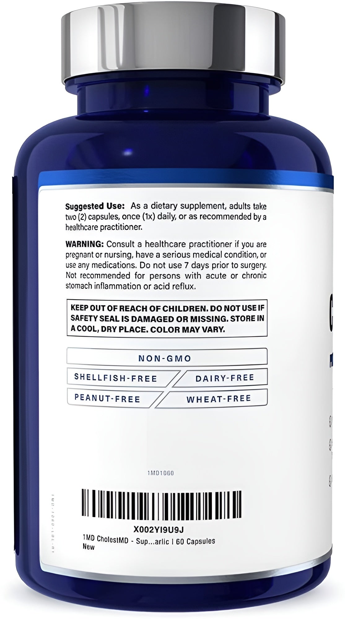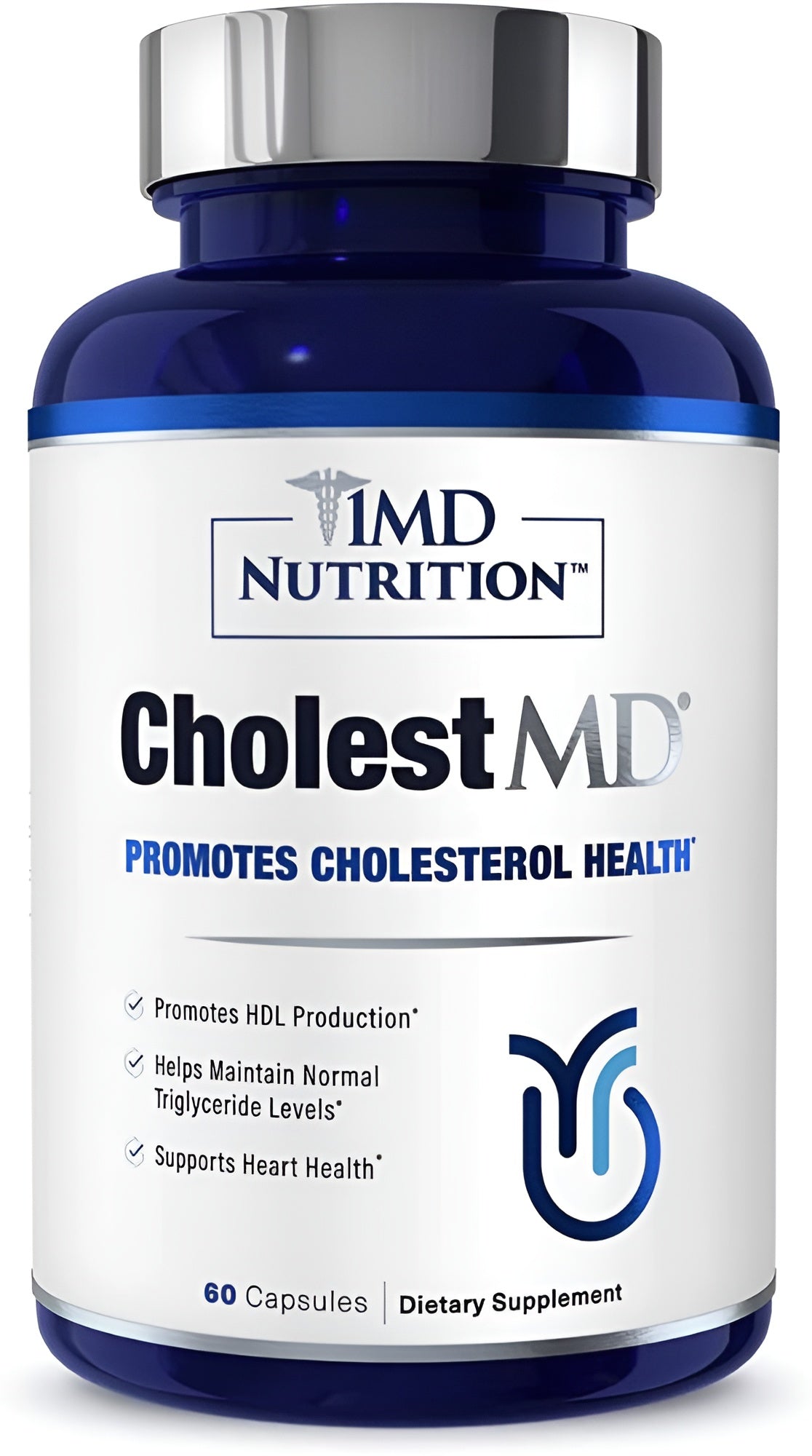 1MD Nutrition CholestMD Supports Healthy Cholesterol Levels Already in Normal Range, Promote Healthy Heart - Cholesterol Supplement w/ Olive Leaf Extract, Citrus Bergamot, Niacin, Garlic- 60 Capsules