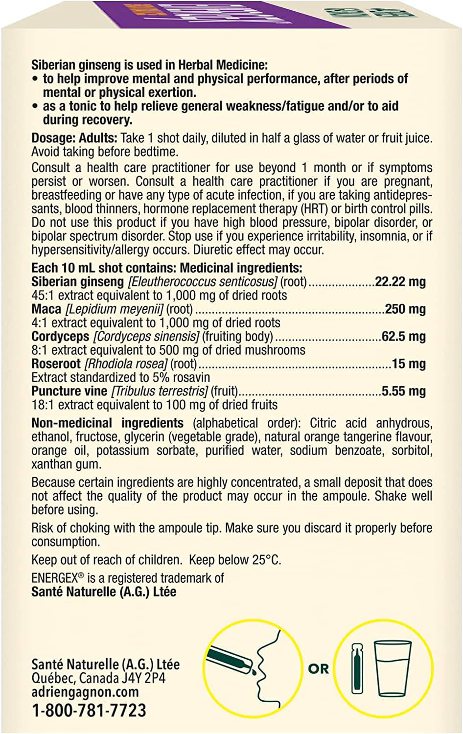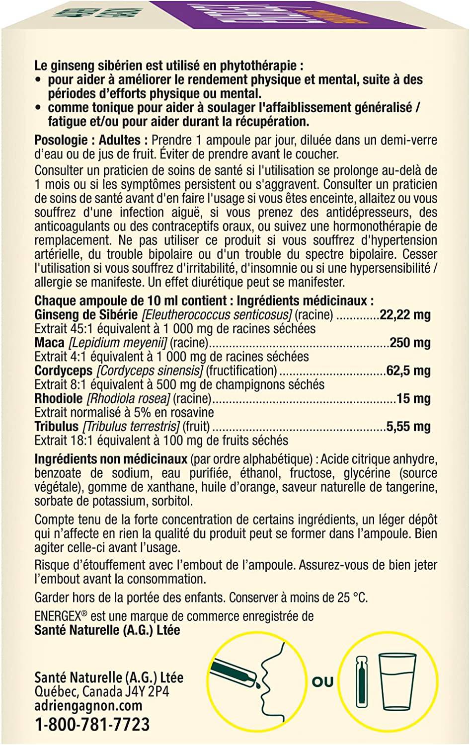 ADRIEN GAGNON - Energex Endurance Liquid – All Day Long Plant-Based Energy – Maca, Ginseng & Adaptogenic Plants - Tangerine Flavor - 30 Shots