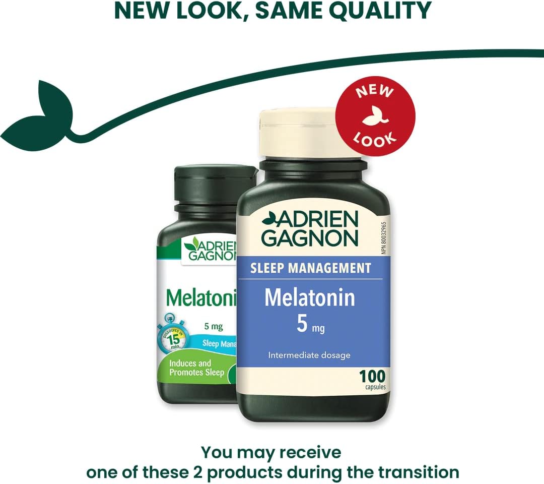 Adrien Gagnon - Melatonin 5 mg, for Faster and Deeper Sleep, 100 Capsules