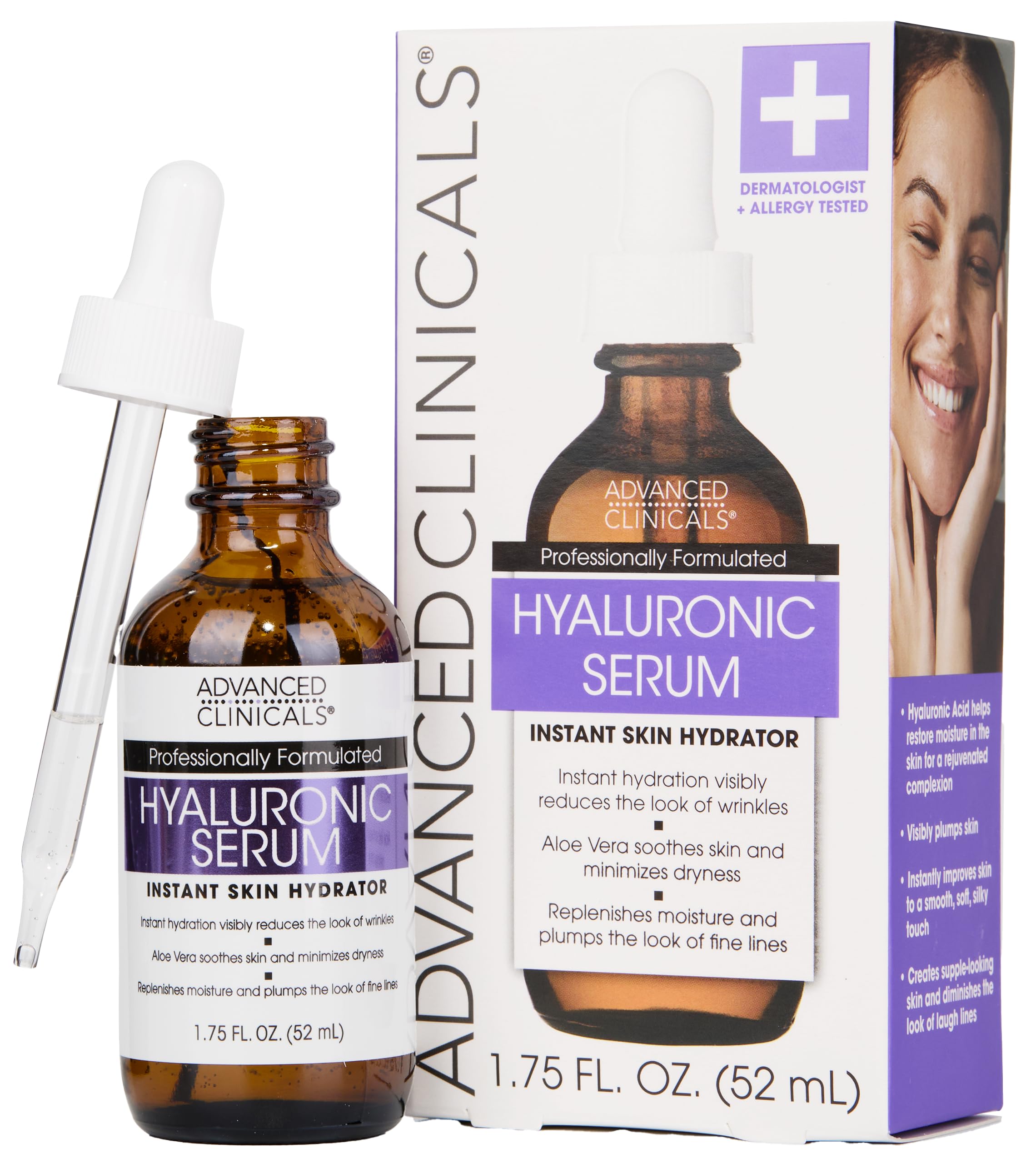 Advanced Clinicals Hyaluronic Acid Serum For Face | Moisturizing Facial Skin Care Products | Hydrating Serum For Face Helps Improve Look Of Wrinkles, Fine Lines, & Uneven Dry Skin Texture, 1.75 Fl Oz