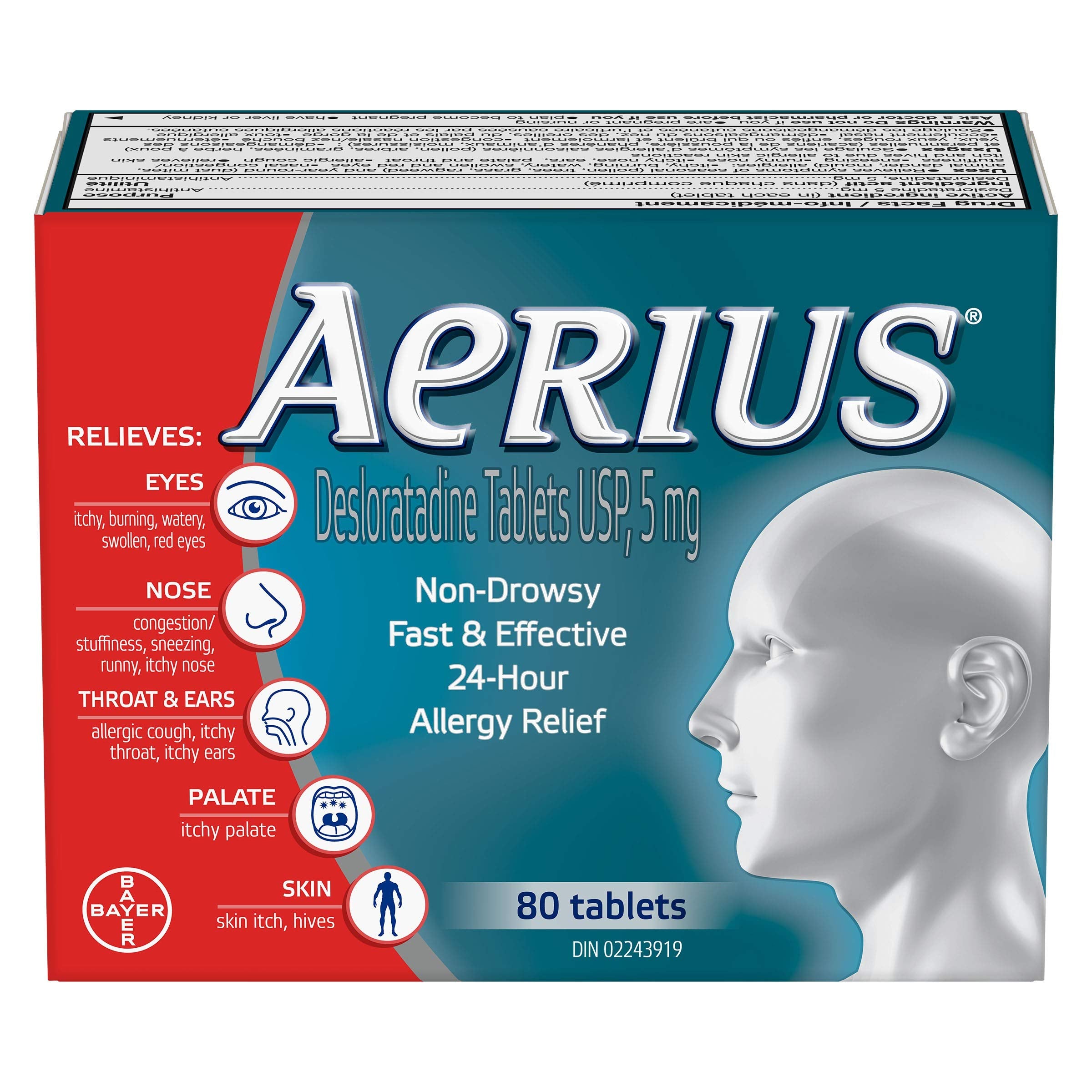 Aerius Allergy Medicine, Fast Relief, 24-Hour, non-drowsy, 15 Symptoms 80 count