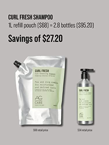 AG Care Curl Fresh Hydrating Shampoo with Pea & Rice Amino Acids - Curl Shampoo to Cleanse Scalp and Retain Moisture for Healthy, Defined Curls, 33.8 Fl Oz Bottle