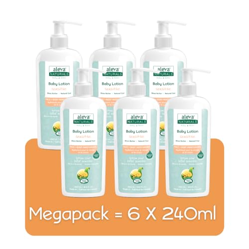 Aleva Naturals Baby Lotion Face + Body Moisturizer - For Sensitive Dry Skin, Face and Body Lotion, Made with Natural and Organic Ingredients, for Babies and Toddlers, Mega Pack- 6x240ml = 1.440L, White