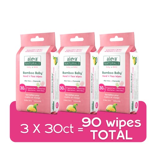 Aleva Naturals Bamboo Baby Hand and Face Wipes - Natural and Organic Ingredients, Cleans and Moisturizes, Extra Strong, and Ultra Soft - Value Pack- 30ct X 3 = 90 Count