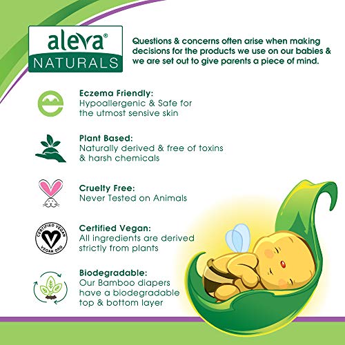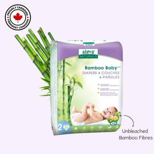 Aleva Naturals Hypoallergenic Bamboo Baby Diapers for Baby, Ultra Soft, Sensitive Skin Friendly, Biodegradable, Disposable– Size 2 (6-17 lbs/3-8 kg) | 30ct