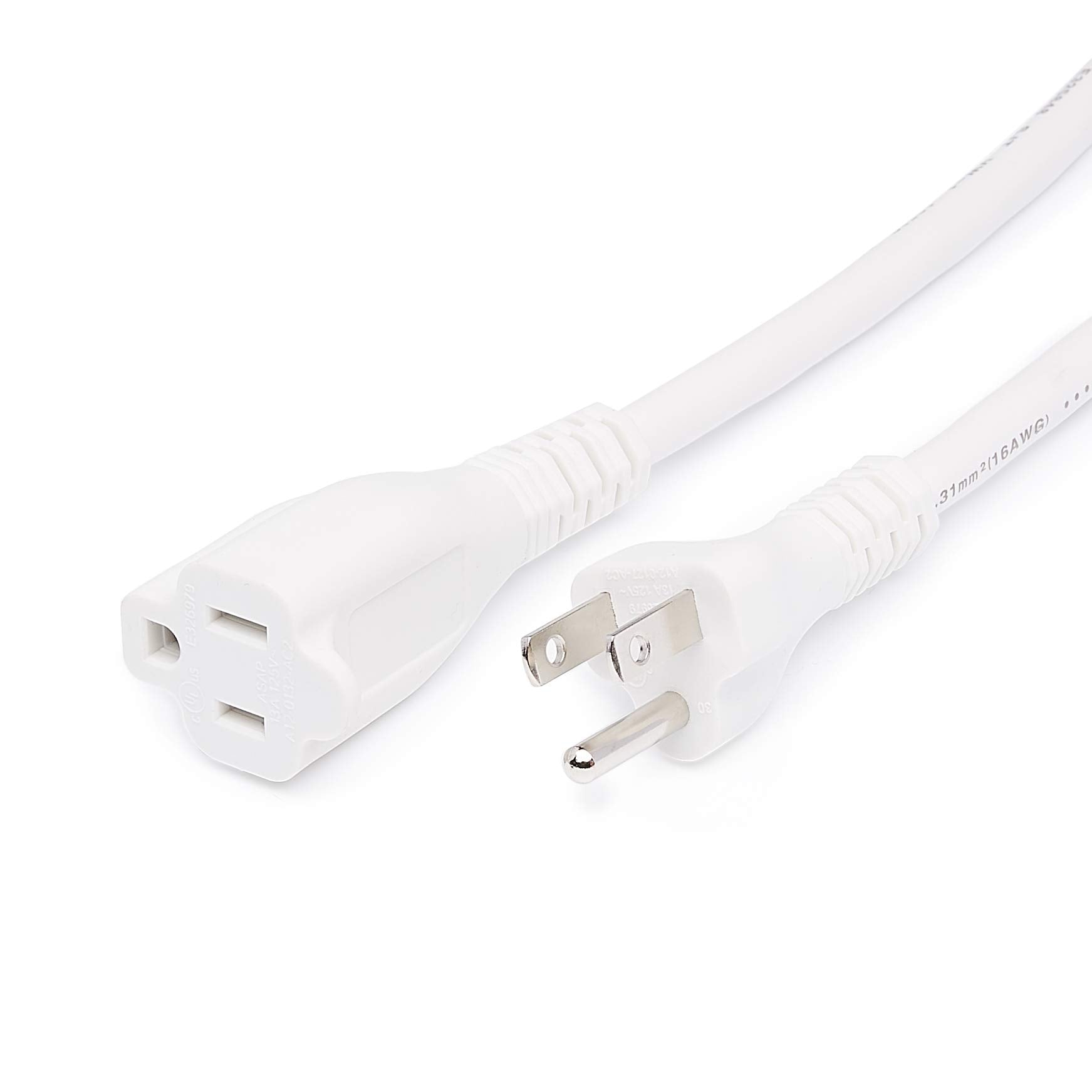 Amazon Basics 3-Foot Extension Cord - 13 Amps, 125V - 2-Pack, White
