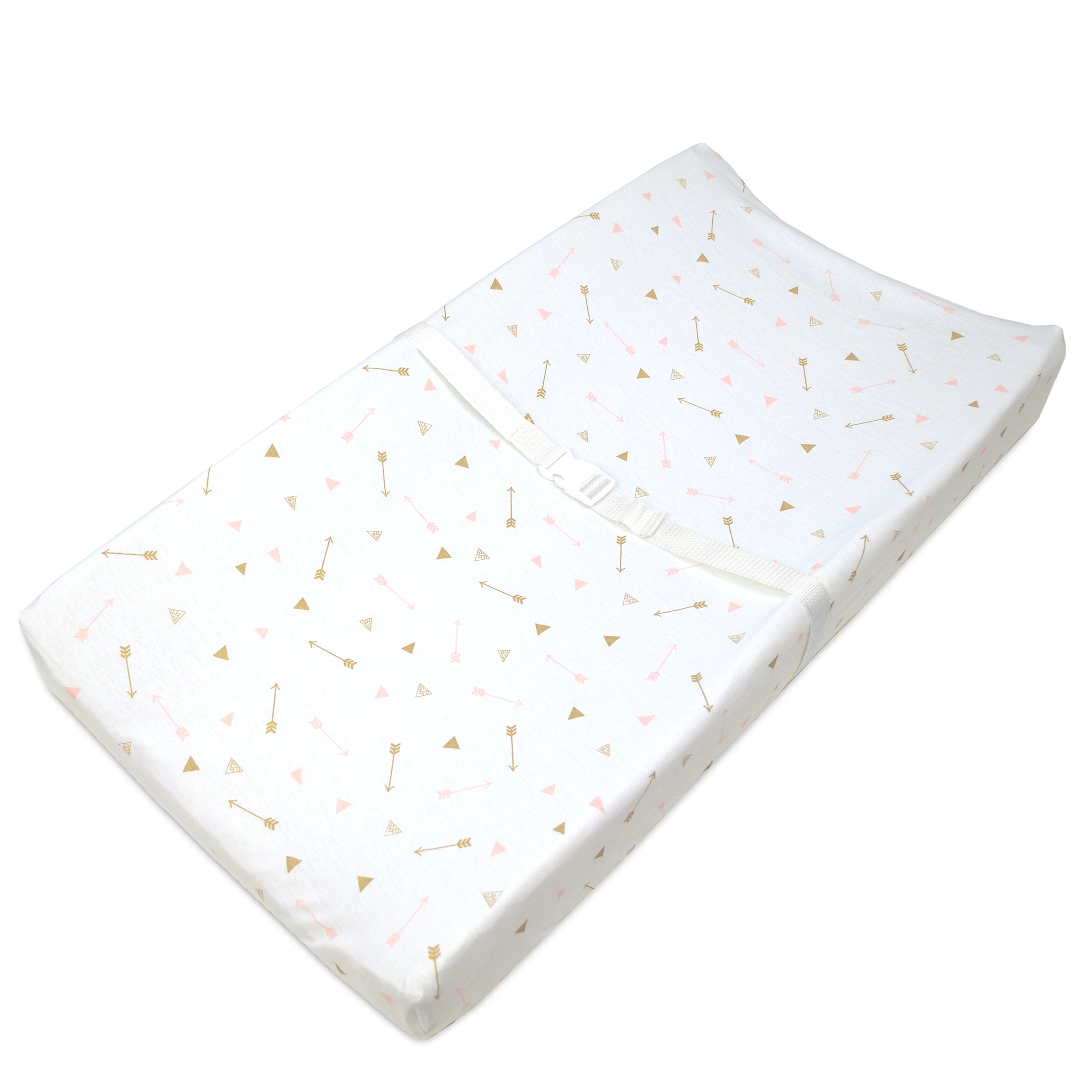 American Baby Printed 100% Natural Cotton Jersey Knit Fitted Contoured Changing Table Pad Cover for Boys and Girls - Soft Breathable, Sparkle Gold/Pink Arrows, Single