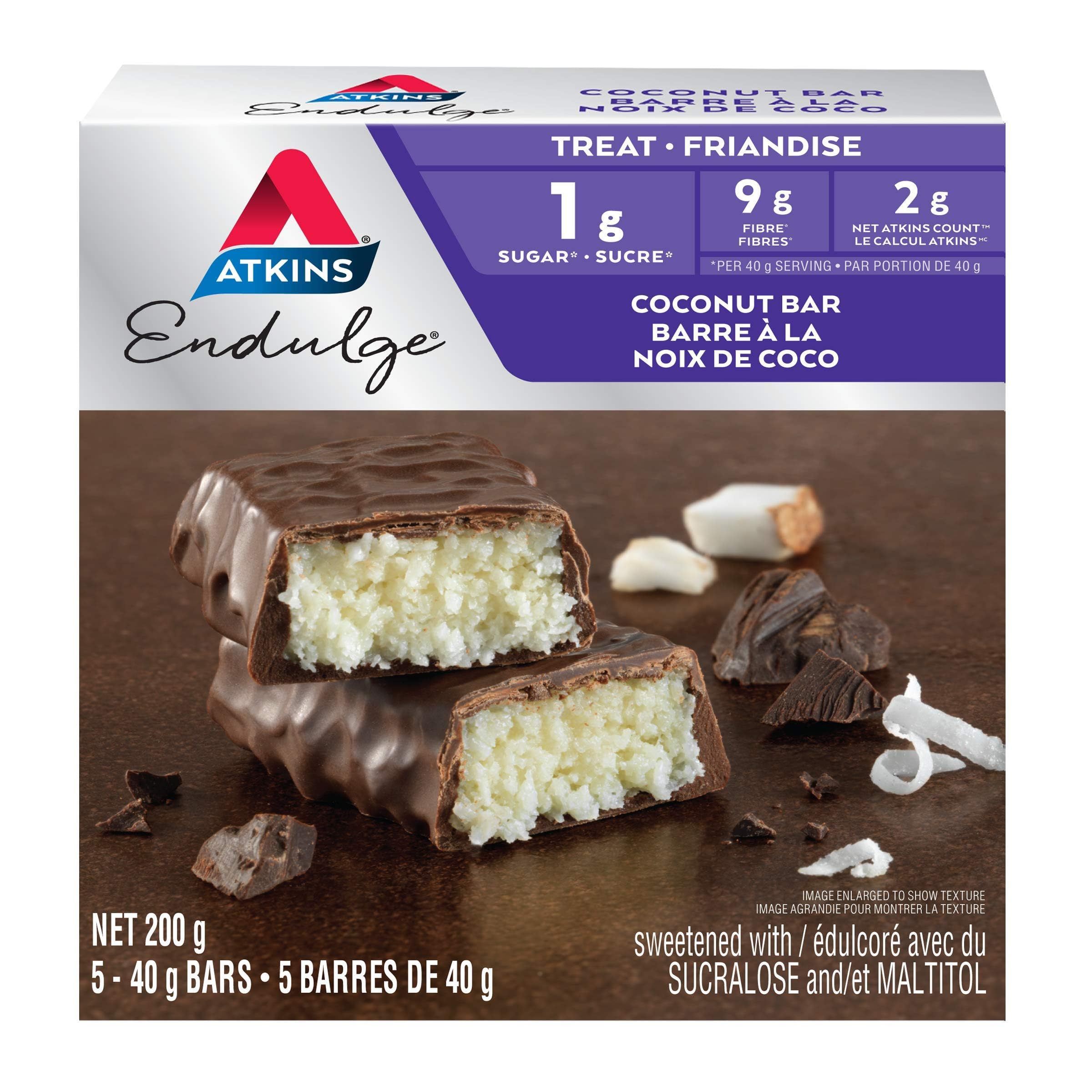 Atkins Endulge Bars - Coconut, Low Sugar, Keto Friendly, High Fibre, 1g Sugar, 2g Carbs, 5ct