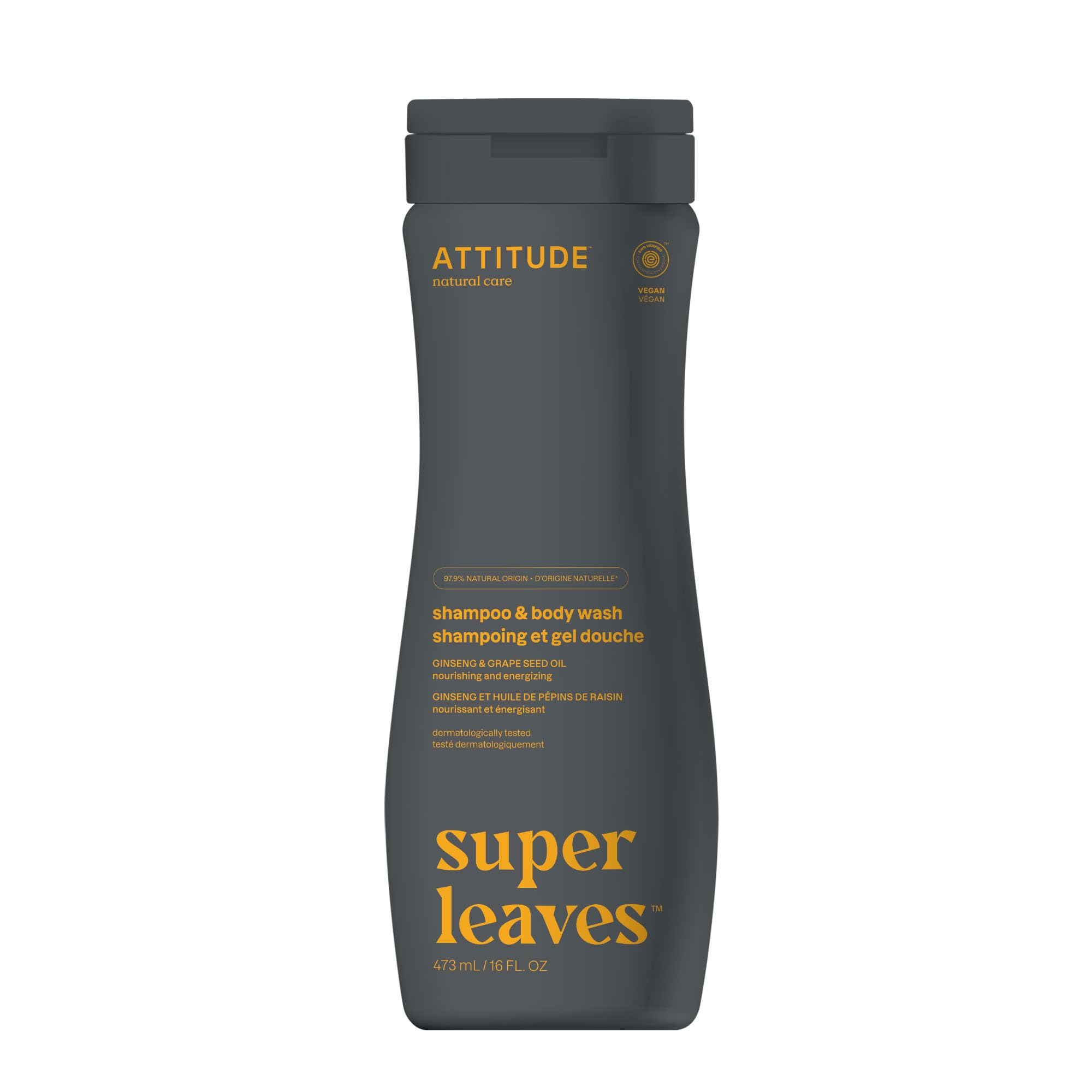 ATTITUDE 2-in-1 Body Wash and Hair Shampoo, Made in Canada, EWG Verified Shower Gel, Dermatologically Tested, Vegan Personal Care, Ginseng and Grapeseed Oil, 473 mL
