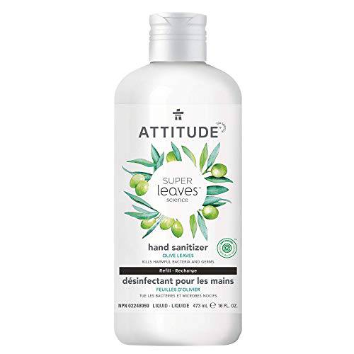 ATTITUDE Hand Sanitizer Refill, EWG Verified, Safe & Effective Against Germs, Vegan & Cruelty-Free Olive Leaves, 473 ml (Refill Bottle) (11493)